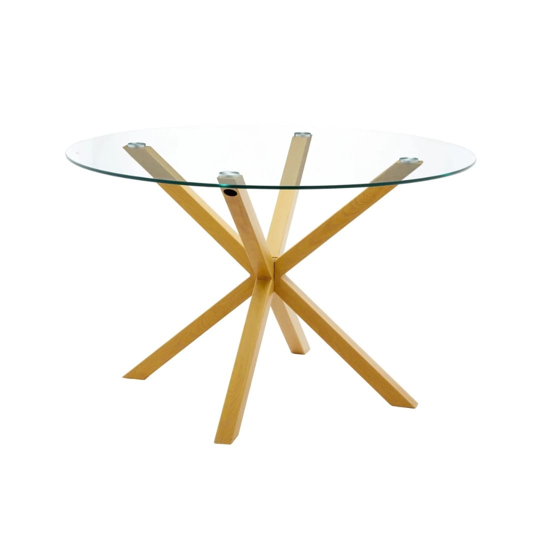 Round Dining Table Glass– Star Design, Oak & Silver Finish