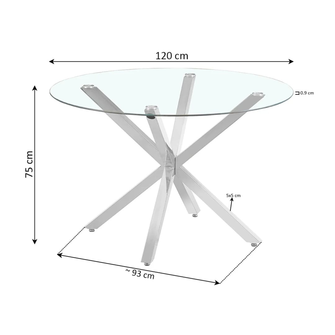 The Round Dining Table Glass with a Star Design combines elegance with functionality. It is perfect for contemporary dining rooms, small spaces, or apartments. The table features an oak base with sleek silver accents. The round glass top adds a modern and sophisticated touch to your home.