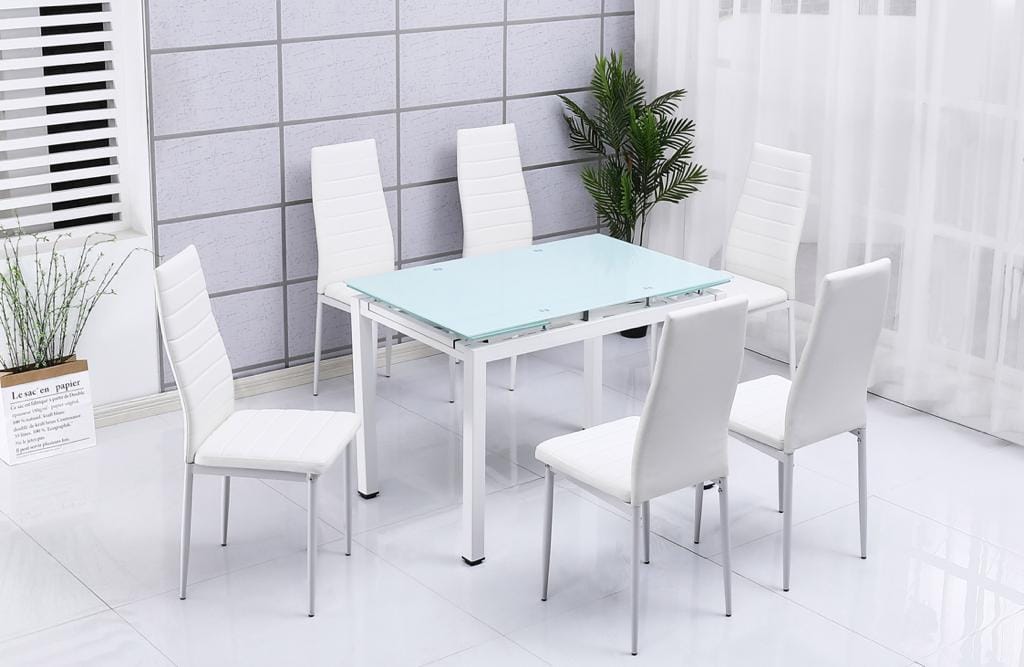 Glass Dining Set Table - Dining Table with 6 Chairs